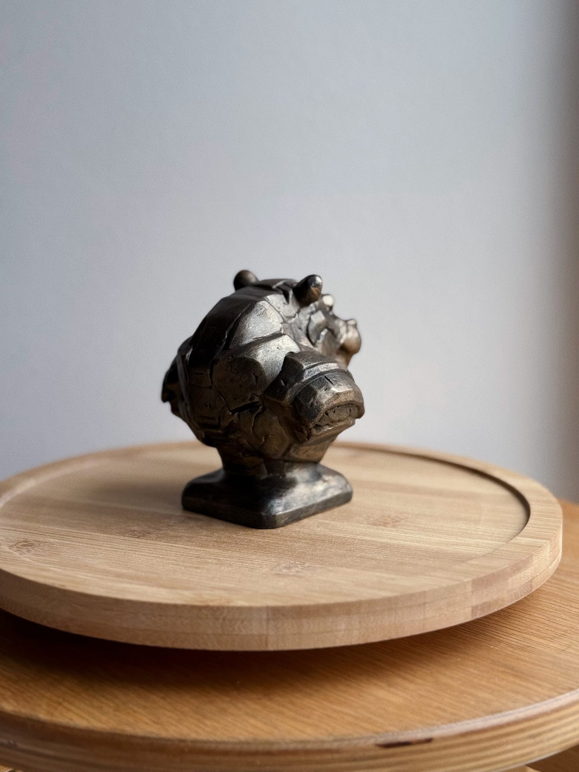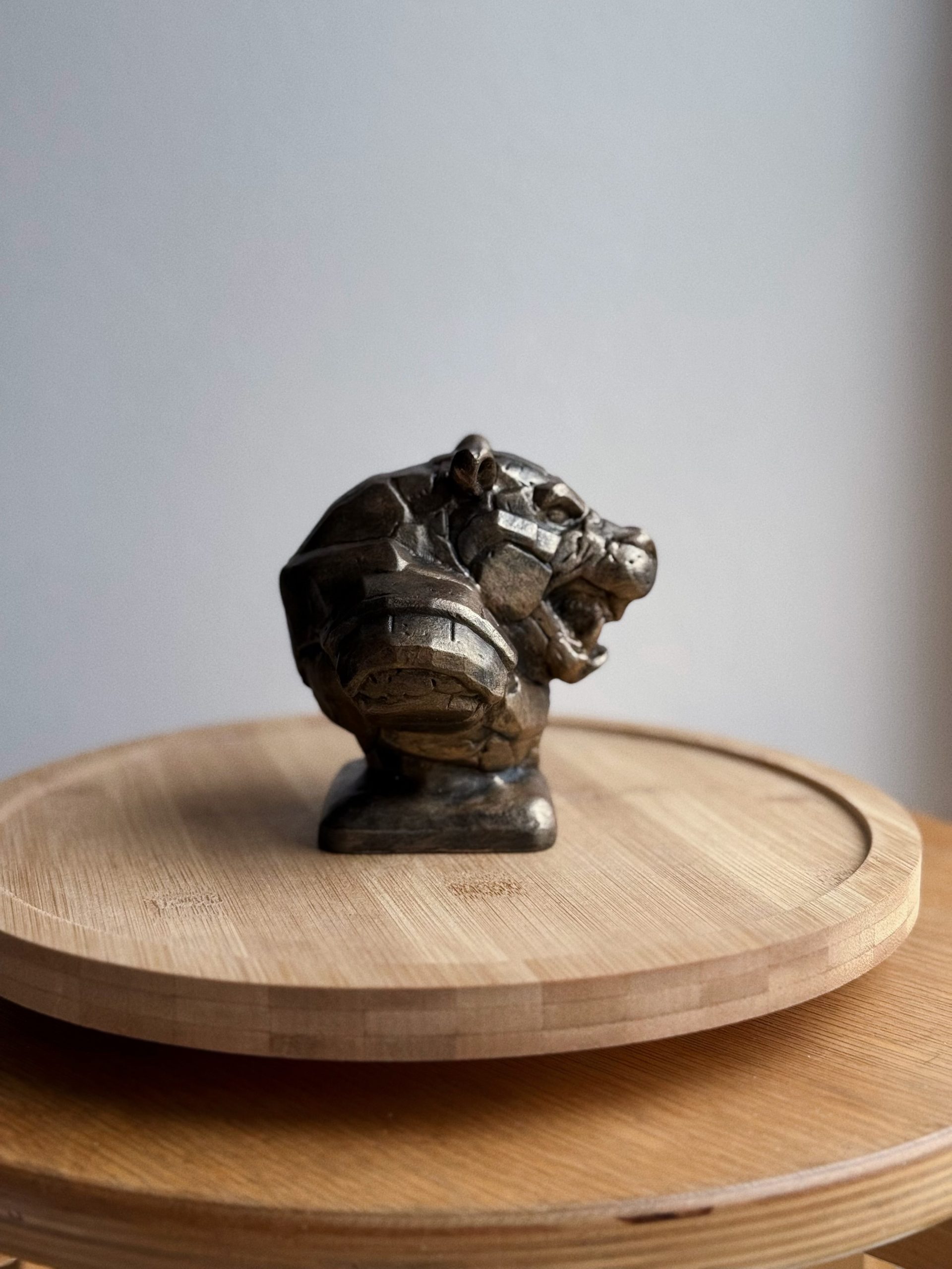Декоративное изделие из гипса ручной работы — статуэтка бронированный Бегемот.