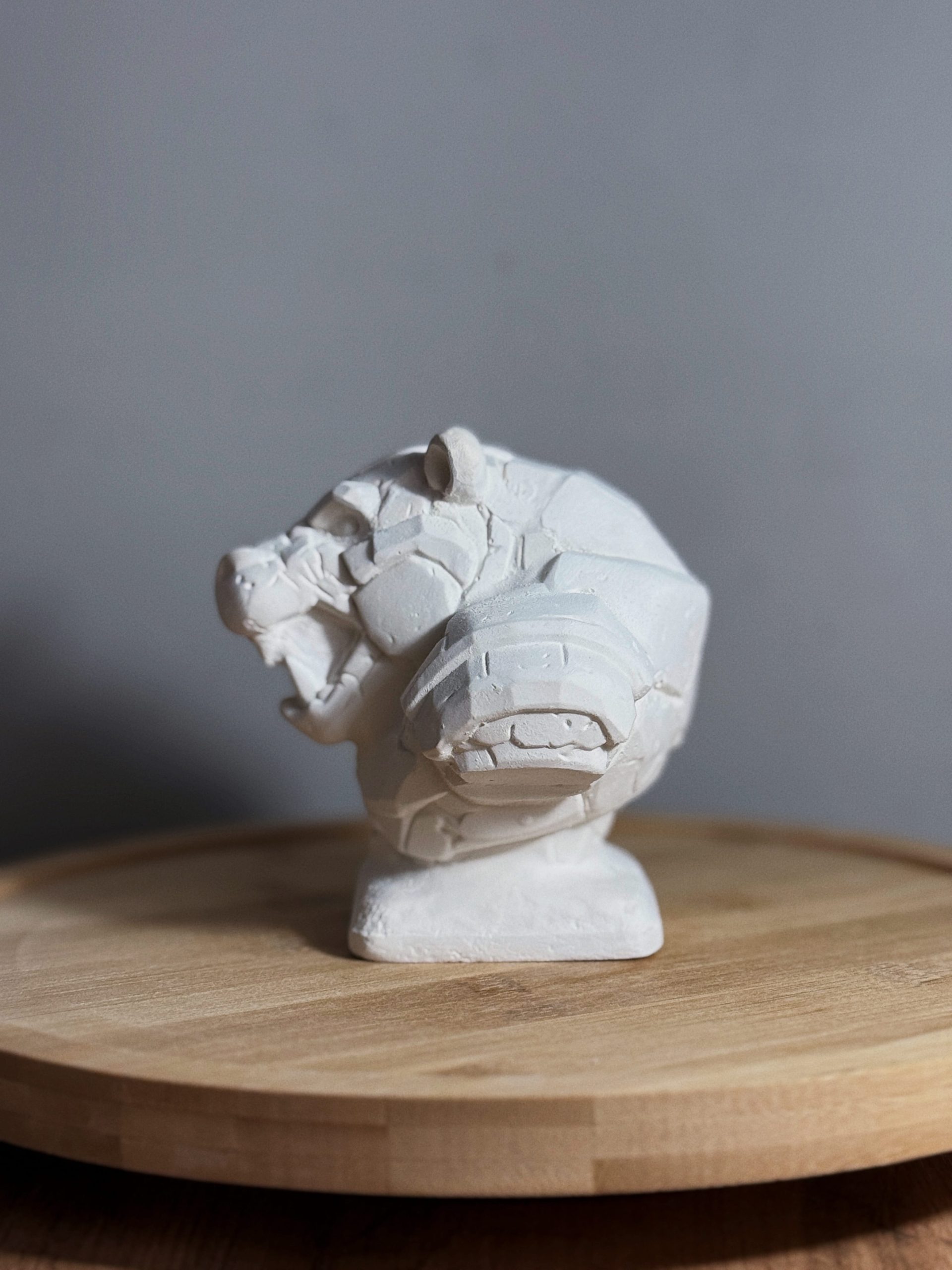 Декоративное изделие из гипса ручной работы — статуэтка бронированный Бегемот.