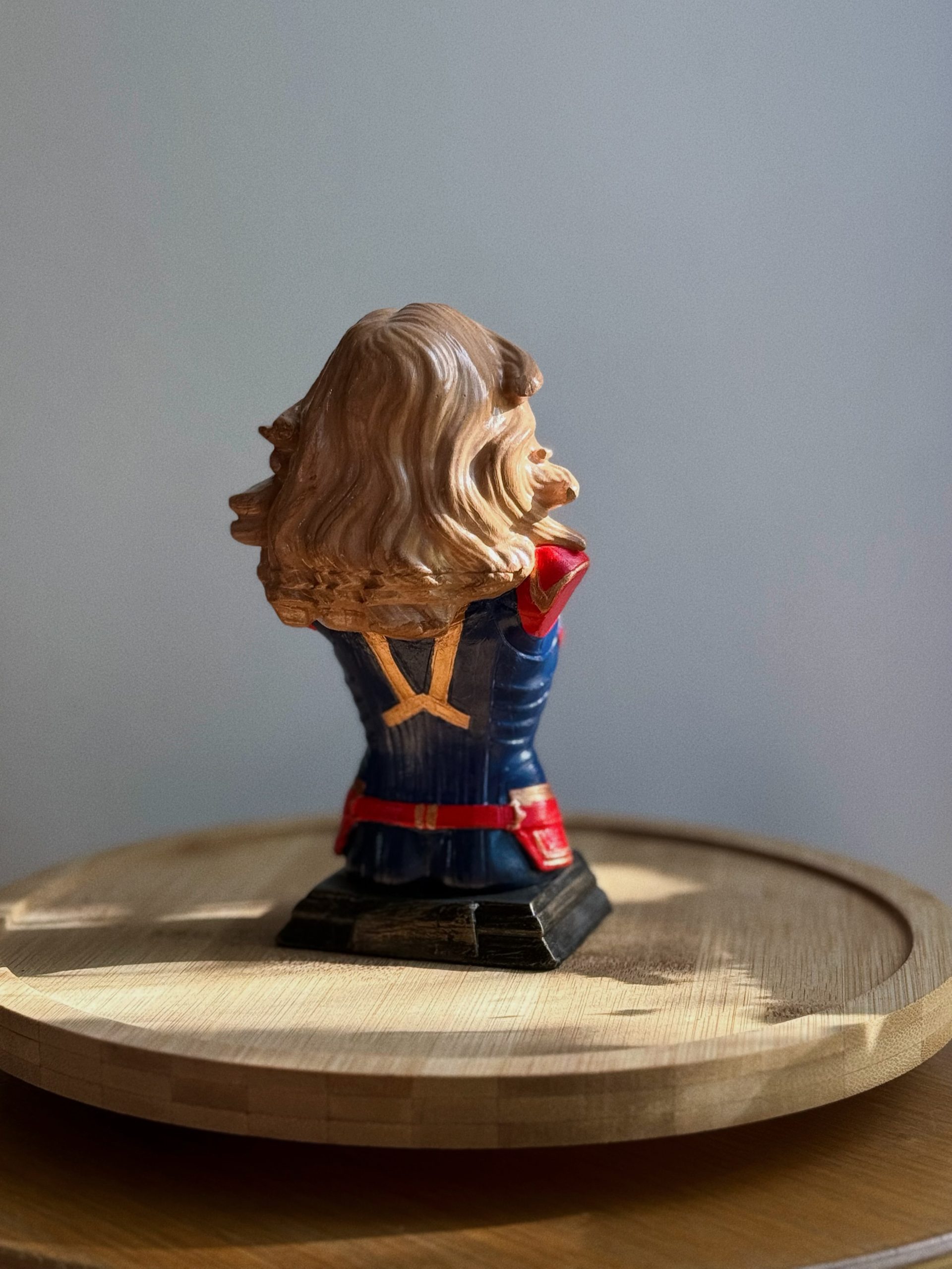Декоративное изделие из гипса ручной работы — статуэтка Капитан Марвел.