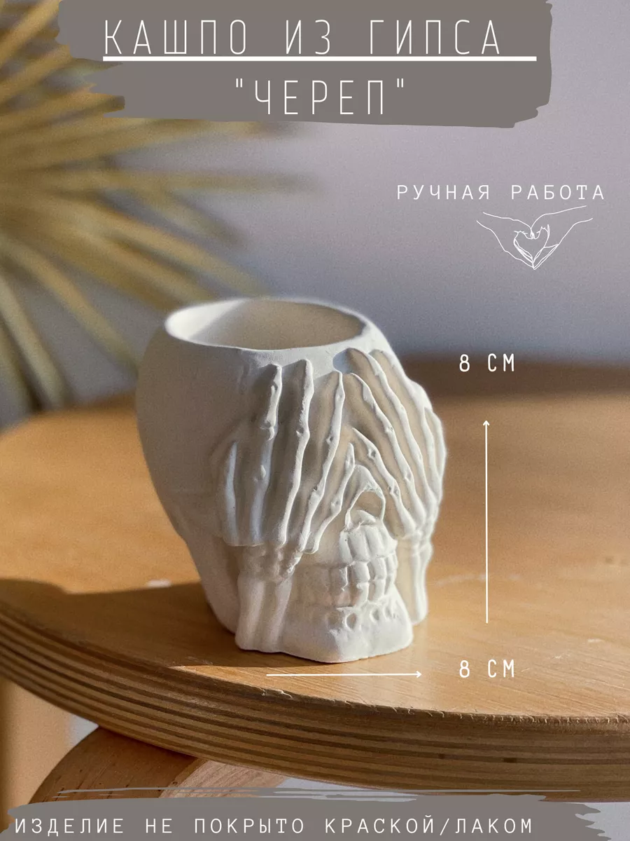 В целом, кашпо из гипса череп — это стильный и функциональный предмет интерьера, который станет ярким акцентом в вашем доме или на балконе.