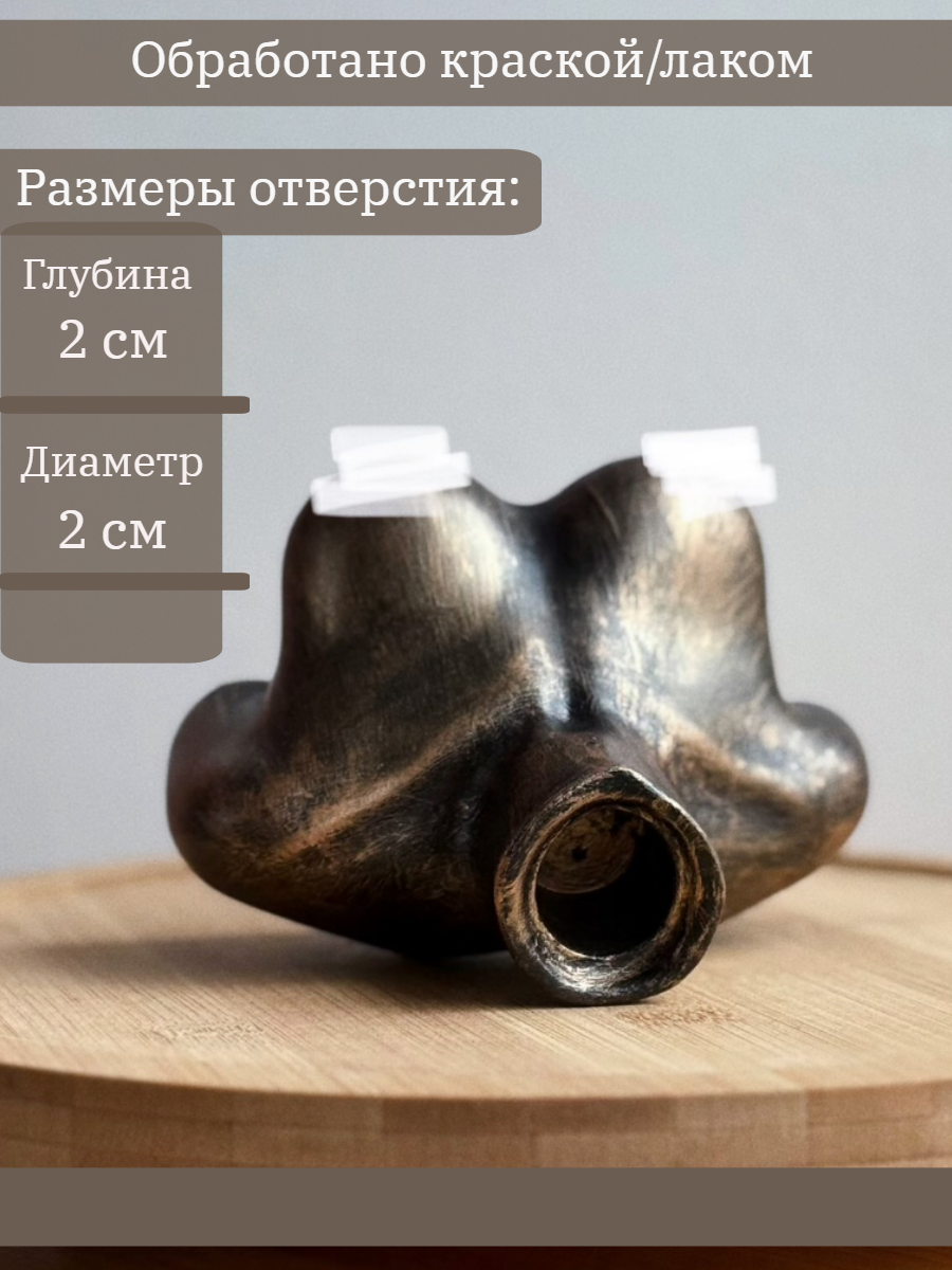 Размеры изделия: высота: 8 см, ширина: 12 см, вес 200 гр. Диаметр отверстия 2 см, глубина отверстия 2 см.