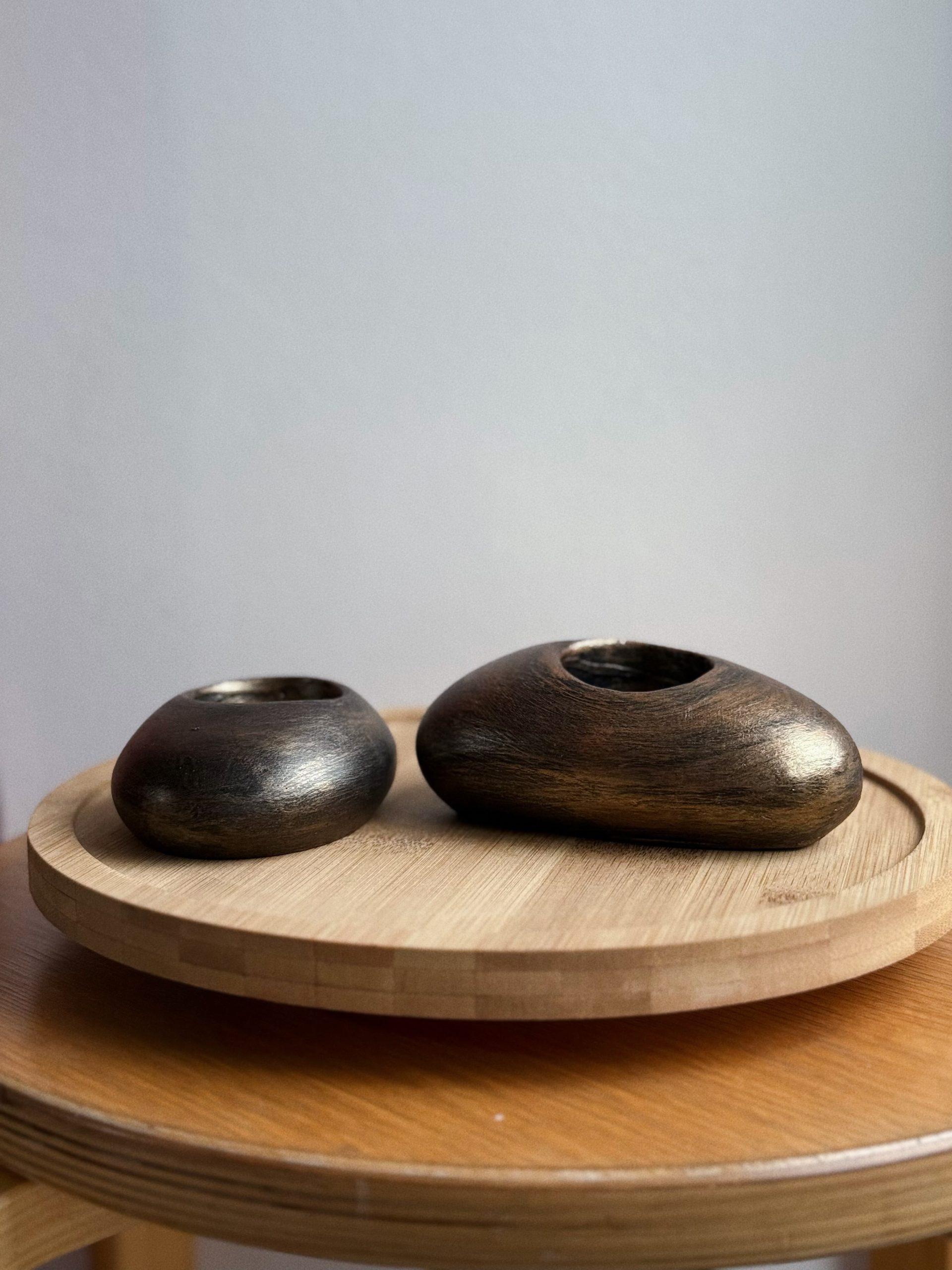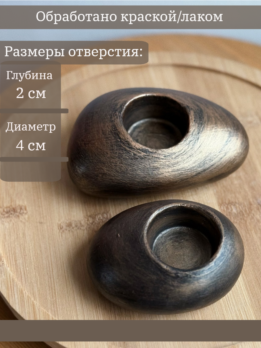 Размеры изделий: Подсвечник 1 — 11*7*5 см. Диаметр отверстия 4 см, Глубина отверстия 2 см. Подсвечник 2 — 9*7*4 см. Диаметр отверстия 4 см, Глубина отверстия 2 см. Общий вес: 300 гр.