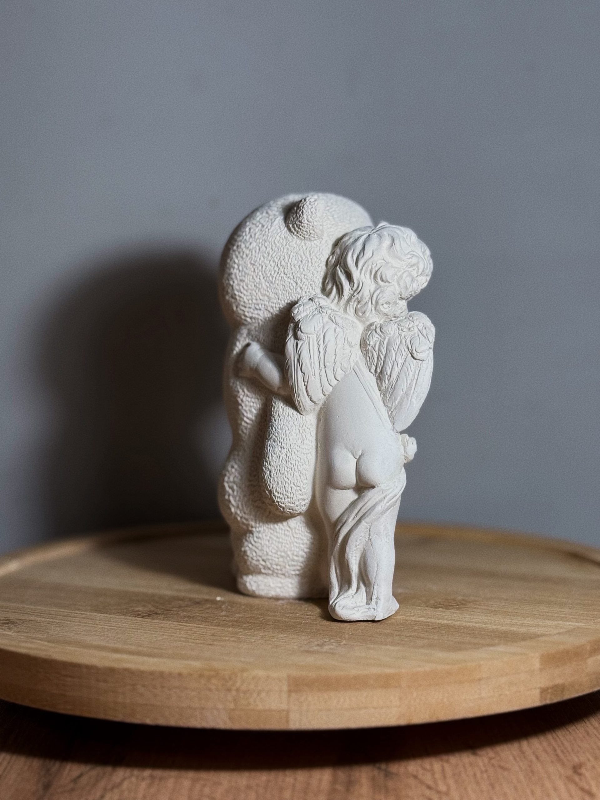 Декоративное изделие из гипса ручной работы — Ангел с Мишкой.